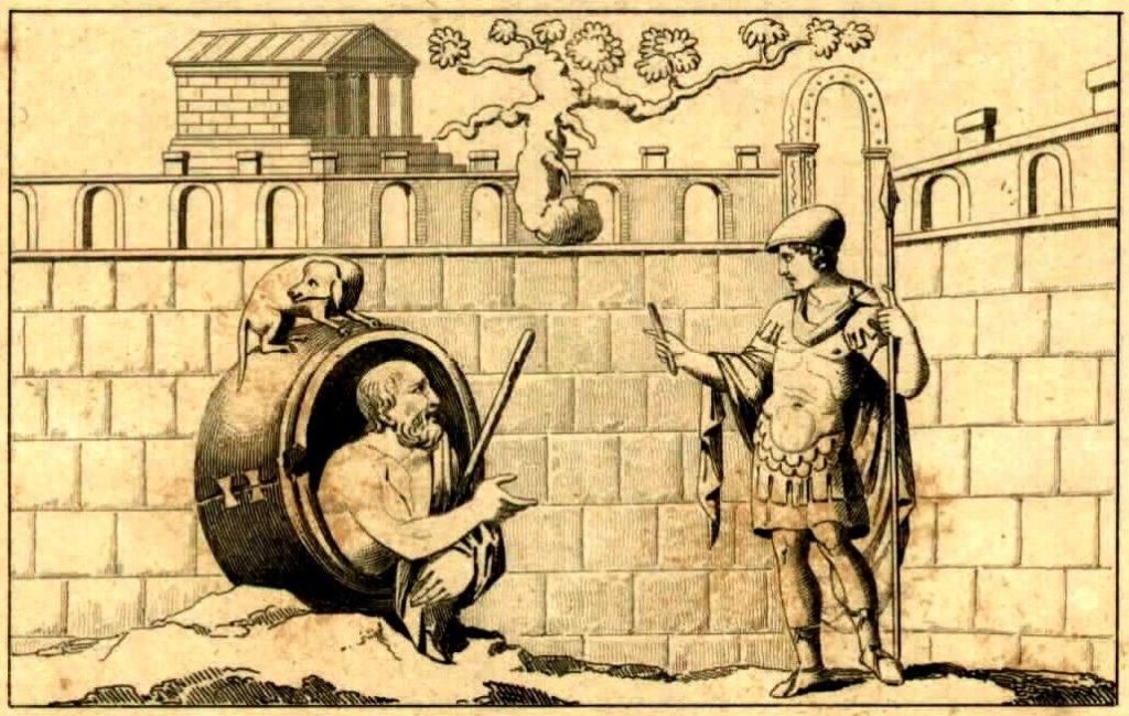 He’s known for many other stories, including his response to Plato’s “man is a featherless biped” (he brought a plucked chicken to his school and said, “Behold, a man.” Seriously.) But the one that always gets me is his first interaction with Alexander the Great.