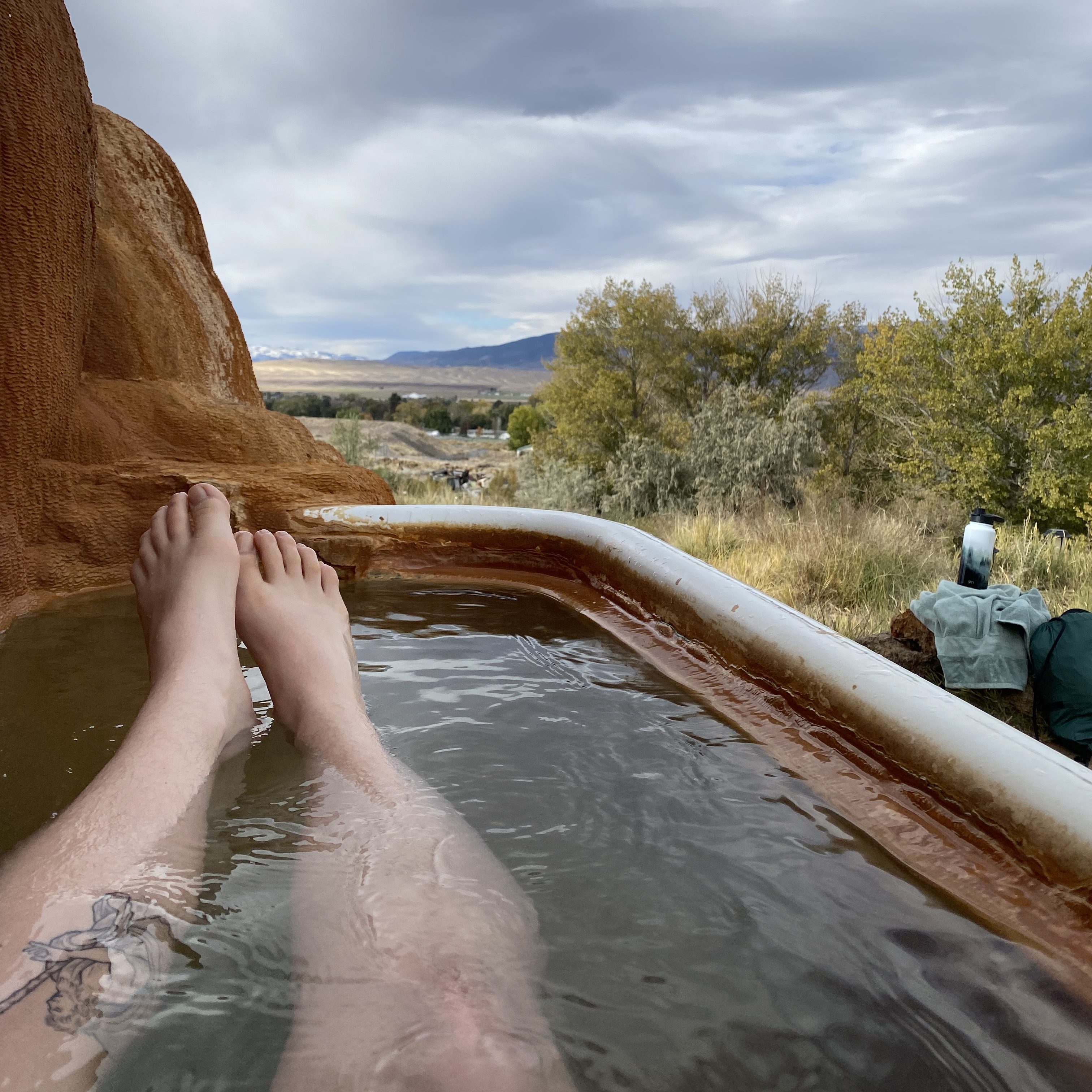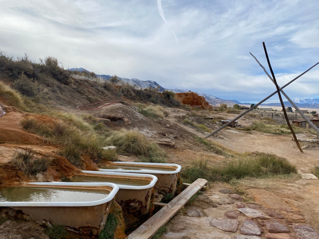 I sorted my van before my few hours at the hot springs. In the summer, the site is packed with people flocking to their music festivals and events. Luckily for me, no one seems to come here in early winter. So there I was–basking in the tubs and large spaces of Mystic Hot Springs entirely alone.