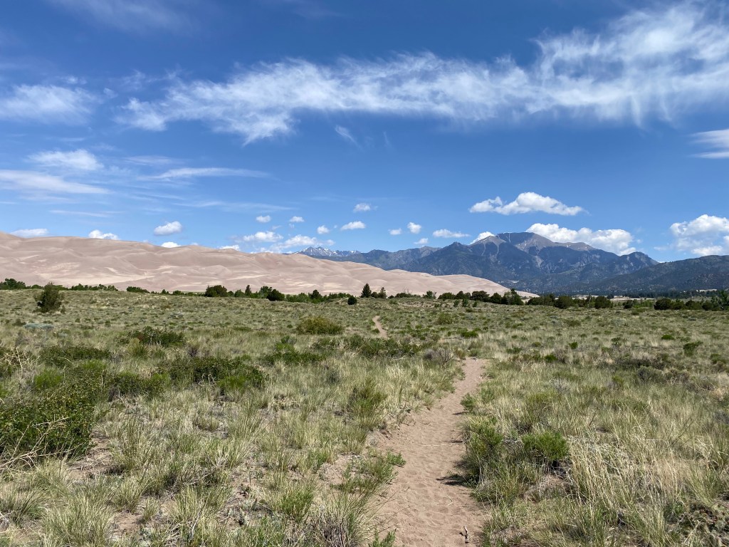 One thing they failed to mention in any of the online materials about Great Sand Dunes is how buggy it is. On the trails, bugs will wrap around any exposed skin, and I assume, especially if you’re wearing coconut-scented sunscreen. I had to swat them away every few steps.