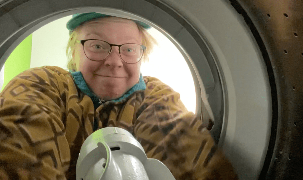 I finished my regular work routine in a coffee shop a block away from the laundromat. It was still raining, and at one point I looked out to a pouring hail storm.