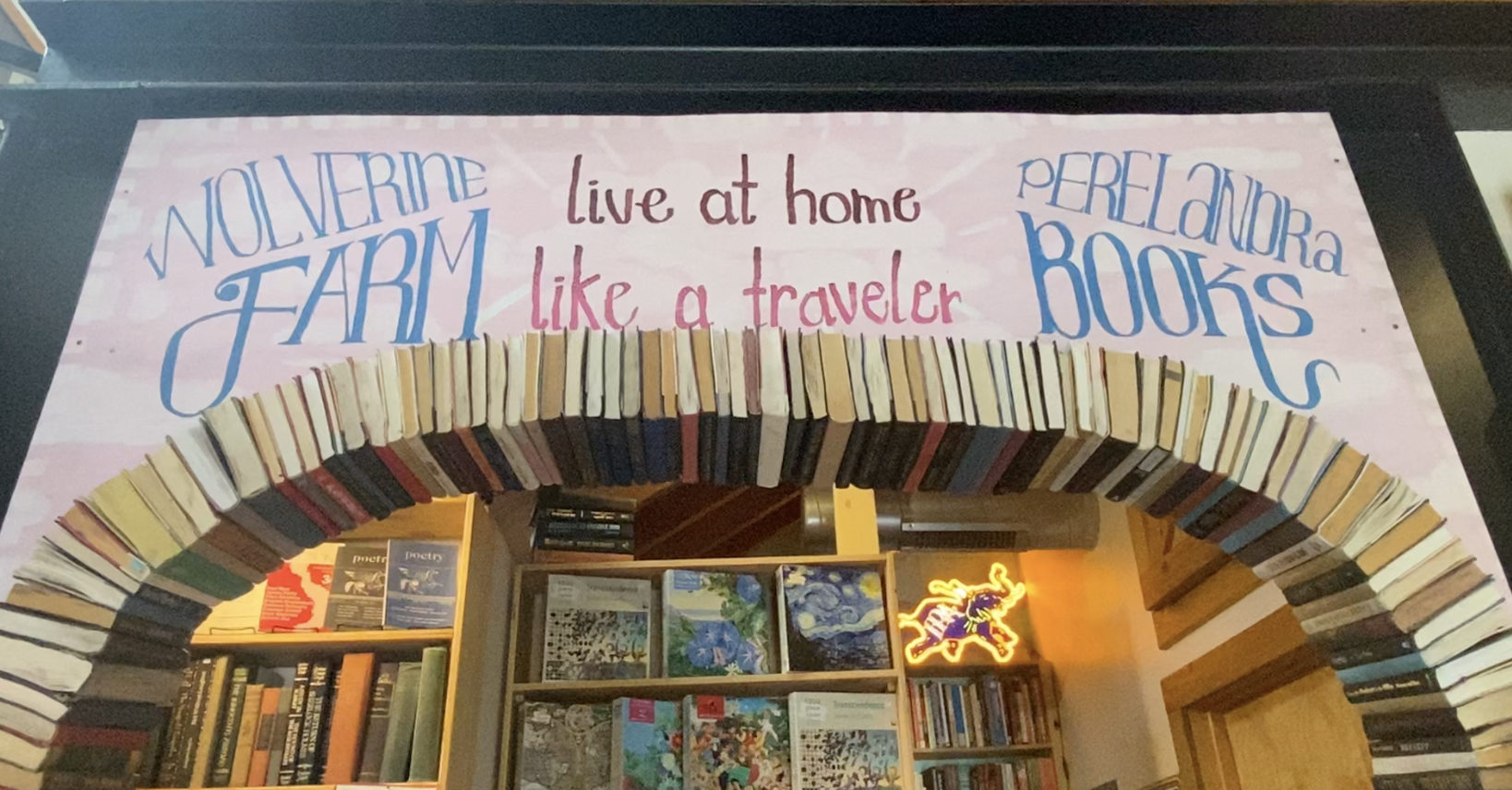 I stopped in the Wolverine Farm Public House, another cool coffee shop with an added beer garden and literary nonprofit. Books lined the walls and even made a Roman arch entrance to one of the rooms.